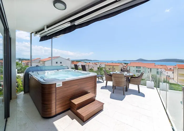 Aliara Jacuzzi lägenhet, belägen i Vodice, är ett boende med 2 sovrum samt med gratis parkering, allergivänliga rum och bubbelpool. Zadar flygplats ligger 65 km från lägenheten, medan Tribunj, Vodice ligger 2 km bort.